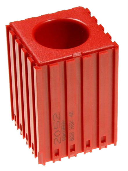 Plastové lůžko CNC nástroje HSK 40, použitelné také pro systémy KM, WDX a UTS. Hlavním přínosem je přehlednost, pořádek a čistota na pracovišti. Z jednotlivých prvků si lze vytvořit libovolně zkombinovanou sestavu. Prvky se spojují pomocí rybinového drážkování.