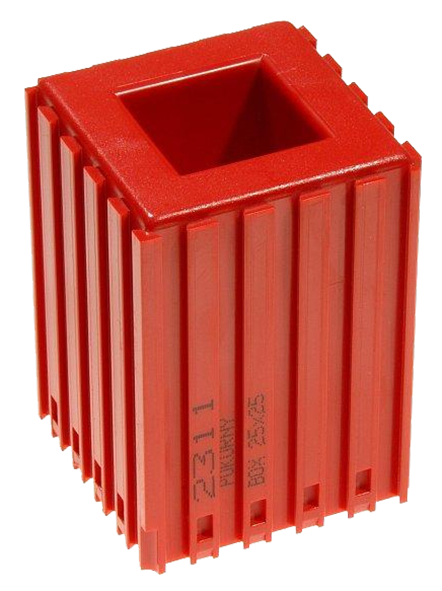 Lůžko s profilem držáku 25 x 25. Hlavním přínosem je přehlednost, pořádek a čistota na pracovišti. Z jednotlivých prvků si lze vytvořit libovolně zkombinovanou sestavu. Prvky se spojují pomocí rybinového drážkování. Barevné provedení: červená, modrá