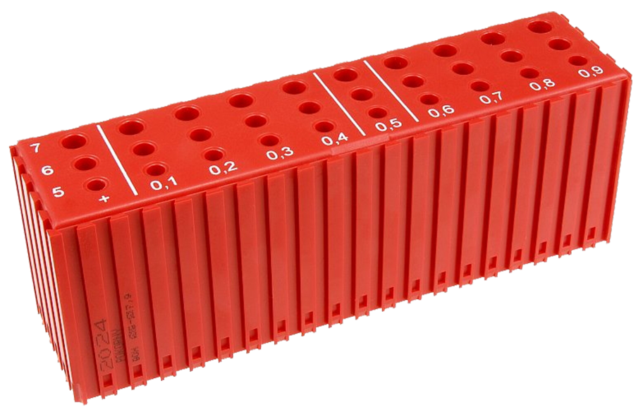 Box je určený k ukládání vrtáků o průměrech 5–7,9 mm. Odstupňování jednotlivých průměrů děr usnadňuje a urychluje nalezení a znovuzařazení vrtáku na jeho místo. Hloubka dutin 20–26 mm.