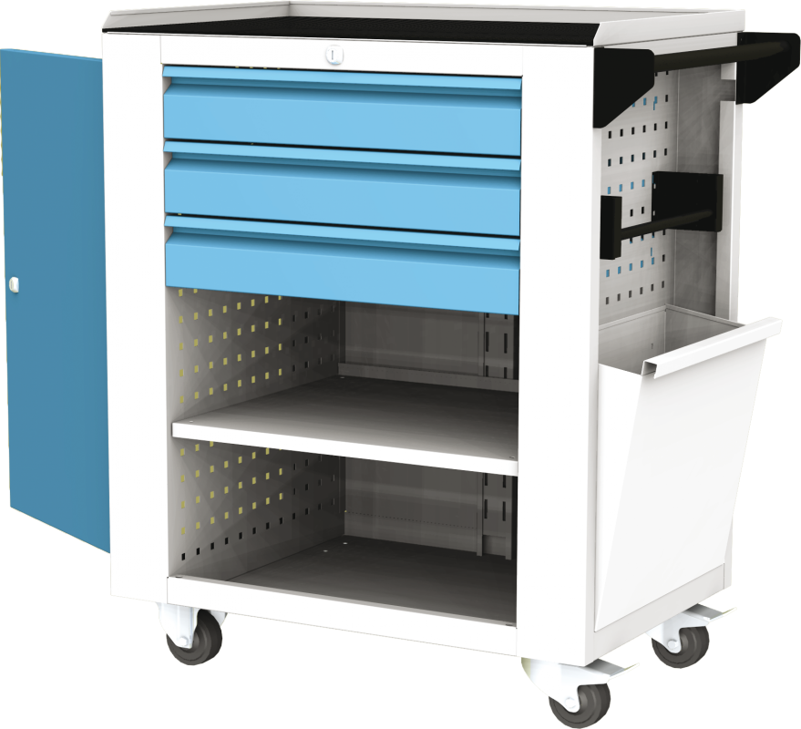 Mobile assembly trolley SVL series – 1 shelf, 3 drawers + accessories
