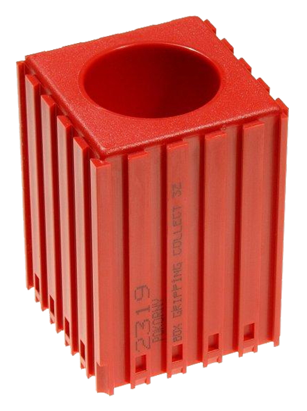 Box je určený k odkládání a skladování upínacích kleštin různých s velkým průměrem 32 mm. Barevné provedení: červená