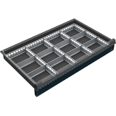 Vnitřní prostor zásuvek může být pro lepší přehlednost rozdělen plechovými nebo plastovými dělícími prvky. Možnost instalace vnitřního dělení zásuvek je u produktu znázorněna piktogramem